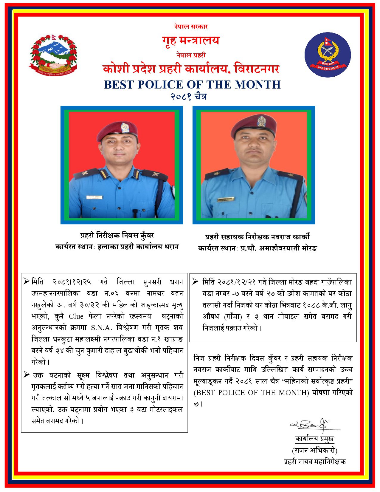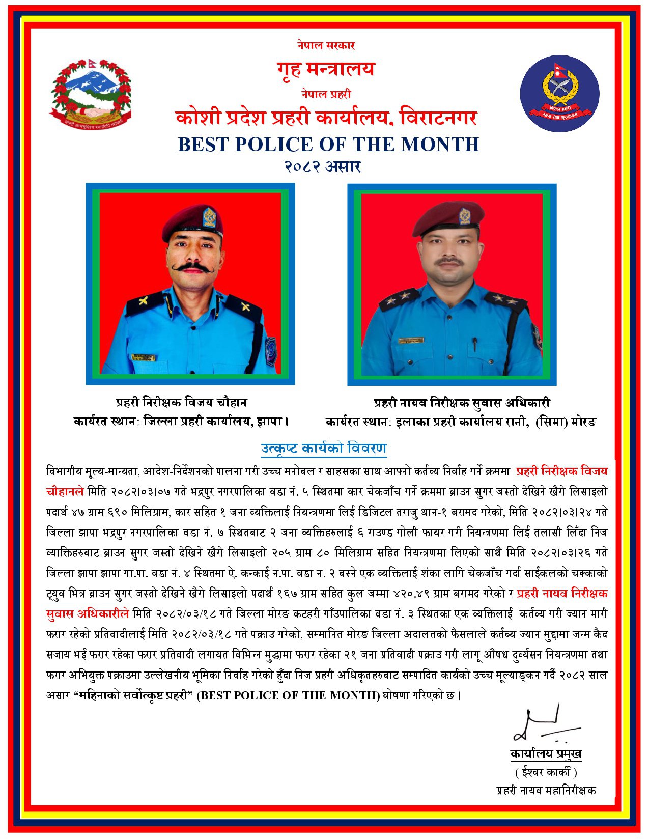 चैत महिनाको सर्वोत्कृष्ट प्रहरी